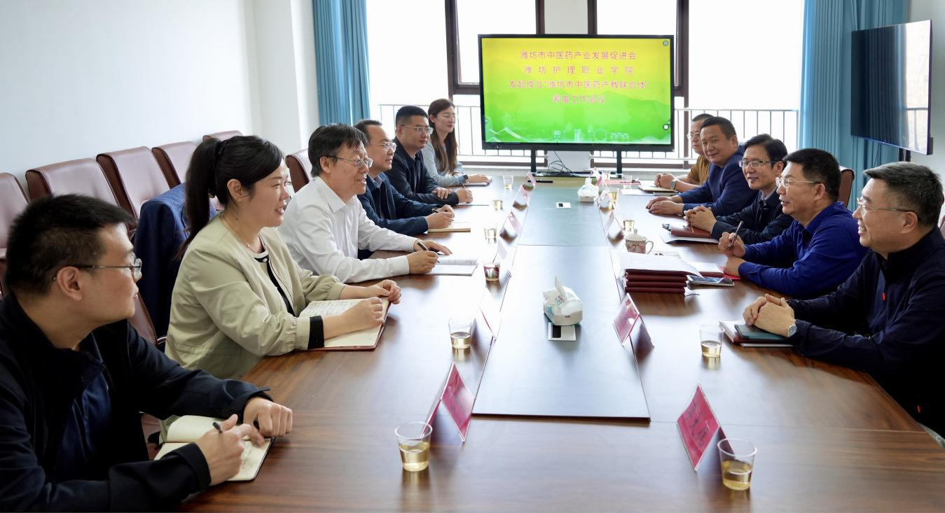 4月18日,潍坊护理职业学院党委书记崔照忠一行到访潍坊市中医药产业发展促进会,就发起成立“潍坊市中医药产教联合体”召开专题筹备工作会议。促进会会长吴海源及相关负责人出席会议。双方围绕联合体组织架构、运行机制、合作路径等进行深入磋商,达成广泛共识。